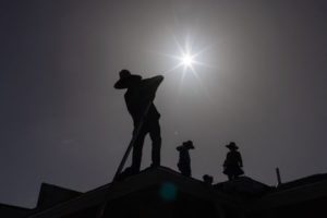 Roofers sport hats to take cover from the sun during a heatwave in Eagle Pass, Texas, U.S. July 27, 2023. REUTERS/Adrees Latif