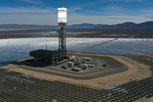 Fields of heliostat mirrors reflect sunlight onto a boiler mounted on a solar power tower at the Ivanpah Solar Electric Generating System, the world’s largest solar thermal power station, in the Mojave Desert near Nipton, California U.S., February 27, 2022. Picture taken with a drone on February 27, 2022. REUTERS/Bing Guan/File Photo