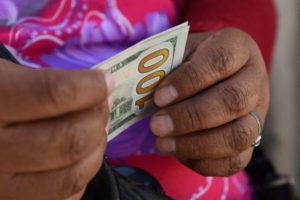 FILE PHOTO: An informal currency trader holds U.S. Dollar bills on a street, in La Paz, Bolivia March 6, 2023. REUTERS/ Claudia Morales/File Photo
