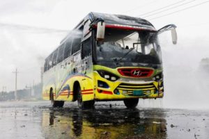 A view shows a vandalised public bus after the supporters of the Bangladesh Nationalist Party (BNP) set it on fire in Shonir Akhra area while staging sit-in rallies on the main entry points of the capital Dhaka, Bangladesh, July 29, 2023. REUTERS/Mohammad Ponir Hossain