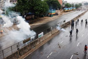 Police fire tear gas during sit-in rallies of Bangladesh Nationalist Party (BNP) on the main entry points of the capital Dhaka, Bangladesh, July 29, 2023. REUTERS/Mohammad Ponir Hossain