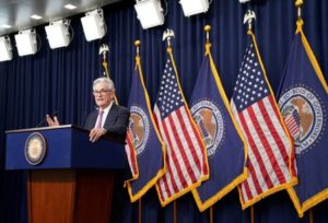 FILE PHOTO: U.S. Federal Reserve Chairman Jerome Powell speaks during a news conference after the release of the Fed policy decision to keep interest rates unchanged, at the Federal Reserve in Washington, U.S, June 14, 2023. REUTERS/Kevin Lamarque/File Photo