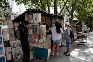 People shop at the booksellers called “Bouquinistes” along the banks of the River Seine in Paris, France, July 29, 2023. REUTERS/Benoit Tessier
