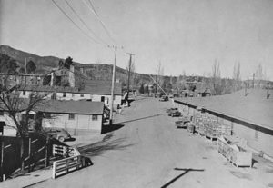 The town of Los Alamos, New Mexico with Fuller Lodge and the “Big House” dormitories is seen in an undated photograph. Department of Energy/Handout via REUTERS.