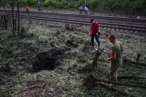 Local residents inspect a crater left after a Russian missile strike, amid Russia’s attack on Ukraine, in Zaporizhzhia, Ukraine July 29, 2023. REUTERS/Viacheslav Ratynskyi