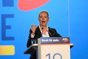 Alice Weidel, co-leader of the far-right party Alternative for Germany (AfD), speaks on the stage on the day of the European election assembly 2023 of the Alternative for Germany (AfD) in Magdeburg, Germany, July 29, 2023. REUTERS/Annegret Hilse