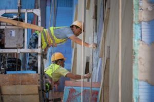 FILE PHOTO: Men work at a construction site of apartment buildings in Beijing, China, July 15, 2022. REUTERS/Thomas Peter/FILE PHOTO