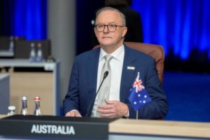 FILE PHOTO: Australia’s Prime Minister Anthony Albanese attends a meeting of the North Atlantic Council during a NATO leaders summit in Vilnius, Lithuania July 12, 2023. REUTERS/Ints Kalnins