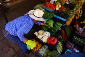 FILE PHOTO: A man buys vegetables at a stall in an outdoor market in downtown of Ciudad Juarez, Mexico July 27, 2023. REUTERS/Jose Luis Gonzalez/File Photo