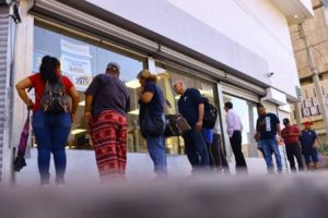 FILE PHOTO: People queue in front of a money transfer office in Ciudad Juarez, Mexico July 27, 2023. REUTERS/Jose Luis Gonzalez/File Photo