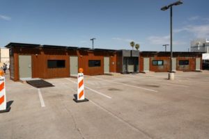 FILE PHOTO: Shipping containers turned into shelters for the homeless are seen in Phoenix, Arizona, U.S., July 27, 2023. “The X-Wing” consists of four 40-foot steel shipping containers in the shape of an ‘X’, with private air conditioned 5-foot by 8-foot rooms, as temperatures in Phoenix have reached over 110 degrees Fahrenheit for 28 consecutive days, setting a new record. REUTERS/Liliana Salgado/File Photo