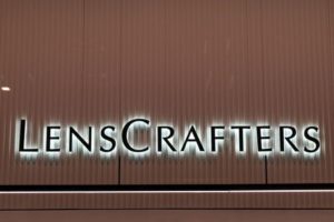 FILE PHOTO: Signage is pictured at a LensCrafters store, a brand owned by EssilorLuxottica SA, in Manhattan, New York City, U.S., November 30, 2021. REUTERS/Andrew Kelly/File Photo