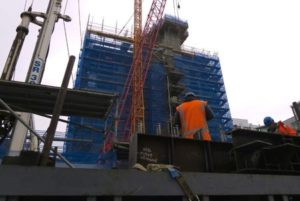 FILE PHOTO: Construction workers unload equipment at a building site for a residential apartment block in central Wellington, New Zealand, July 3, 2017. REUTERS/David Gray/File Photo