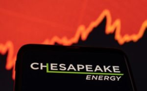 Chesapeake Energy logo is seen on smartphone in front of displayed stock graph in this illustration taken January 25, 2022. REUTERS/Dado Ruvic/Illustration/File photo