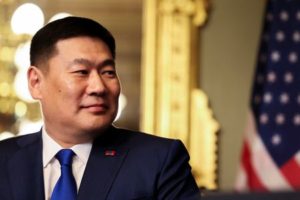 Mongolia’s Prime Minister Oyun-Erdene Luvsannamsrai listens as Vice President Kamala Harris speaks at her ceremonial office in the Eisenhower Executive Office Building on the White House campus in Washington, U.S., August 2, 2023. REUTERS/Kevin Wurm