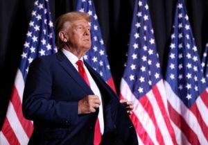 FILE PHOTO: Former U.S. President and Republican presidential candidate Donald Trump attends a campaign event in Council Bluffs, Iowa, U.S., July 7, 2023. REUTERS/Scott Morgan