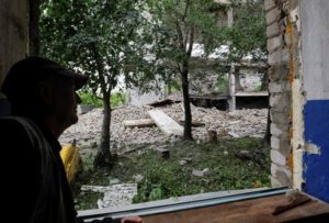 An employee of a local enterprise Igor, who didn’t give his family name, demonstrates a destroyed facility located on the premises of a poultry farm following recent shelling in the course of Russia-Ukraine conflict in the village of Karpaty in the Luhansk region, Russian-controlled Ukraine, May 31, 2023. REUTERS/Alexander Ermochenko/File Photo