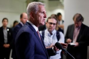 U.S. House Speaker Kevin McCarthy (R-CA) speaks with reporters after a Republican conference meeting at the U.S. Capitol in Washington, U.S. July 18, 2023. REUTERS/Jonathan Ernst/File Photo