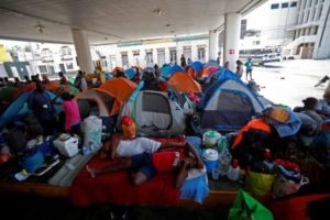 FILE PHOTO: Haitian asylum seekers set up camp in an abandoned gas station while they wait to attempt to cross into the U.S. by an appointment through the Customs and Border Protection app, called CBP One, at a makeshift camp, in Matamoros, Mexico June 21, 2023. REUTERS/Daniel Becerril/File Photo