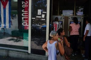 People line up to withdraw cash from an automated teller machine (ATM) outside a bank in Havana, Cuba, August 3, 2023. REUTERS/Alexandre Meneghini