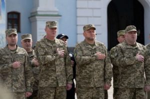 Commander in Chief of the Ukrainian Armed Forces Valerii Zaluzhnyi, Chief of the General Staff of Ukraine’s Armed Forces Serhii Shaptala, Chief of the Military Intelligence of Ukraine Kyrylo Budanov and Head of the Ukraine’s State Security Service Vasyl Maliuk attend a ceremony marking the Day of Ukrainian Statehood, amid Russia’s attack on Ukraine, in Kyiv, Ukraine July 28, 2023. Ukrainian Presidential Press Service/Handout via REUTERS/File Photo