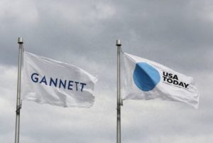 The corporate flags for the Gannett Co and its flagship newspaper, USA Today, fly outside their corporate headquarters in McLean, Virginia, July 23, 2013. REUTERS/Larry Downing/File photo