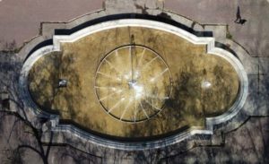 A man walks past a water fountain during an unusual winter period heatwave in Santiago, Chile, August 3, 2023. REUTERS/Ivan Alvarado
