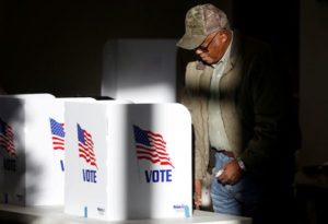 FILE PHOTO: A voter casts his ballot at a polling station in Ridgeland, Mississippi, U.S., November 27, 2018. REUTERS/Jonathan Bachman/File Photo