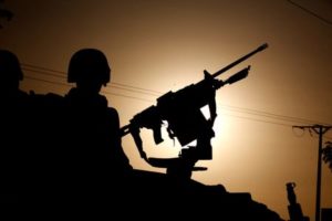 FILE PHOTO: Silhouettes of members of the regional ECOWAS force are seen at the Denton Bridge check point in Banjul, Gambia January 22, 2017. REUTERS/Thierry Gouegnon/File Photo