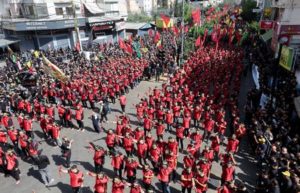 Lebanon’s Hezbollah supporters march during a religious procession to mark