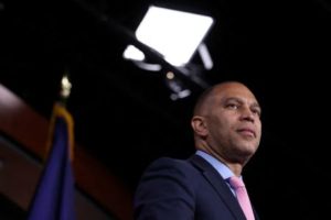 FILE PHOTO: U.S. House Democratic Leader Hakeem Jeffries (D-NY) speaks at a news conference on Capitol Hill following a House Democratic Caucus meeting ahead of an expected vote in the U.S. House of Representatives on a bill raising the federal government’s $31.4 trillion debt ceiling, in Washington, U.S., May 31, 2023. REUTERS/Julia Nikhinson/File Photo