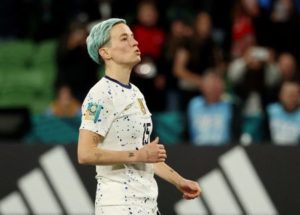 Soccer Football – FIFA Women’s World Cup Australia and New Zealand 2023 – Round of 16 – Sweden v United States – Melbourne Rectangular Stadium, Melbourne, Australia – August 6, 2023 Megan Rapinoe of the U.S. reacts after missing a penalty during the penalty shootout REUTERS/Asanka Brendon Ratnayake