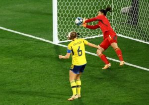 Soccer Football – FIFA Women’s World Cup Australia and New Zealand 2023 – Round of 16 – Sweden v United States – Melbourne Rectangular Stadium, Melbourne, Australia – August 6, 2023 Sweden’s Zecira Musovic makes a save from Alex Morgan of the U.S. REUTERS/Hannah Mckay