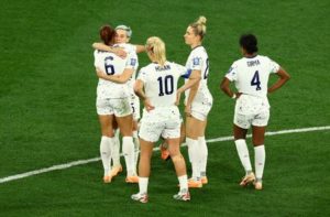 Soccer Football – FIFA Women’s World Cup Australia and New Zealand 2023 – Round of 16 – Sweden v United States – Melbourne Rectangular Stadium, Melbourne, Australia – August 6, 2023 Megan Rapinoe of the U.S. embrace Lynn Williams of the U.S. alongside teammates after the losing the penalty shootout and being knocked out of the World Cup REUTERS/Hannah Mckay