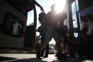 FILE PHOTO: A British participant who left a camping site of the 25th World Scout Jamboree arrives at a hotel in Seoul, South Korea, August 5, 2023. REUTERS/Kim Hong-Ji/file photo