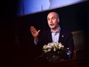 Presidential pre-candidate Horacio Rodriguez Larreta gestures during his presentation at the 135th Argentine Rural Society’s annual exposition, in Buenos Aires, Argentina July 24, 2023. REUTERS/Matias Baglietto
