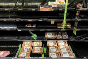 FILE PHOTO: Beyond Meat products are displayed on grocery store shelves inside Kroger Co.’s Ralphs supermarket amid fears of the global growth of coronavirus cases, in Los Angeles, California, U.S. March 15, 2020. REUTERS/Patrick T. Fallon/File Photo