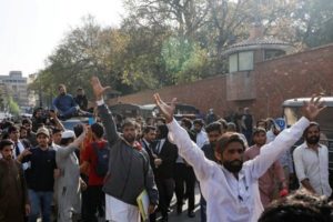 FILE PHOTO: Supporters of Imran Khan, the former Prime Minister of Pakistan, escort his vehicle as he leaves the district High Court in Lahore, Pakistan March 21, 2023. REUTERS/Akhtar Soomro/File Photo