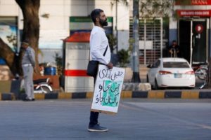 FILE PHOTO: A supporter of Pakistan’s former Prime Minister Imran Khan, holds a placard as he along with others gather for what they call ‘a true freedom protest’, demanding ‘Save constitution – Save Pakistan’, in Islamabad, Pakistan, May 14, 2023. REUTERS/Akhtar Soomro/File Photo