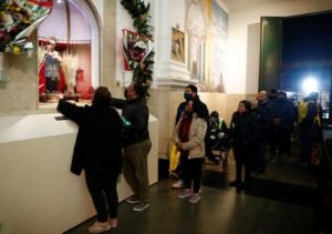 Argentine faithfuls touch the glass in front of a statue of San Cayetano (Saint Cajetan), the patron saint of labour and bread, during his feast day at San Cayetano church in Buenos Aires, Argentina August 7, 2022. REUTERS/Agustin Marcarian