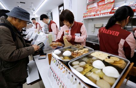 FILE PHOTO: Employees work at a 7-Eleven convenience store in Tokyo, Japan