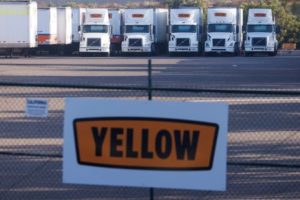 Semi truck trailers are pictured at freight trucking company Yellow’s terminal near the Otay Mesa border crossing between the U.S. and Mexico, after the company filed for bankruptcy protection, in San Diego, California, U.S., August 7, 2023 REUTERS/Mike Blake
