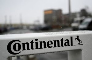 FILE PHOTO: Logo of German tyre company Continental is pictured before the annual news conference in Hanover, Germany, March 9, 2021. REUTERS/Fabian Bimmer