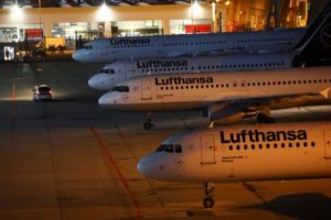A view shows Lufthansa planes parked at Frankfurt airport during a nationwide strike called by the German trade union Verdi over a wage dispute, in Frankfurt, Germany March 27, 2023. REUTERS/Kai Pfaffenbach