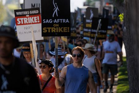 FILE PHOTO: Hollywood actors and writers on strike outside Disney studios in California