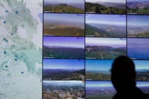 Cal Fire fire captain Kris Yeary keeps watch over some of the hundreds of cameras located in Cal Fire’s San Diego County headquarters in El Cajon, California, U.S., August 4, 2023. Artificial intelligence is learning from seasoned professionals on how to detect wildfires and now being brought online to assist. REUTERS/Mike Blake