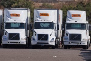 Semi truck trailers are pictured at freight trucking company Yellow’s terminal near the Otay Mesa border crossing between the U.S. and Mexico, after the company filed for bankruptcy protection, in San Diego, California, U.S., August 7, 2023 REUTERS/Mike Blake