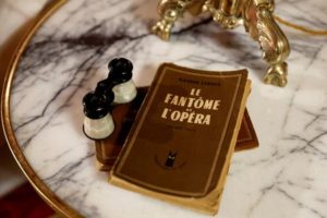 FILE PHOTO: An old edition of the book “The Phantom of the Opera” by author Gaston Leroux is seen in the Loge d’honneur transformed into a bedchamber inside the Opera Garnier, during a media presentation of the space which will be rented through Airbnb to two people for one night, in Paris, France, January 3, 2023. REUTERS/Gonzalo Fuentes