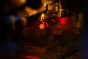 FILE PHOTO: A laser diamond cutting machine cuts a rough diamond at “Diamonds of ALROSA” factory in Moscow, Russia April 30, 2021. Picture taken April 30, 2021. REUTERS/Tatyana Makeyeva/File Photo