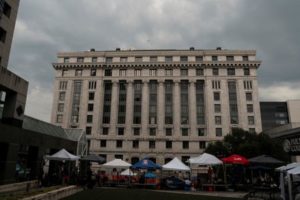 Media workers are seen stationed outside the Lewis R. Slaton Courthouse, after a Grand Jury brought back indictments against former U.S. President Donald Trump and 18 of his allies in their attempt to overturn the state’s 2020 election results, in Atlanta, Georgia, U.S., August 15, 2023. REUTERS/Cheney Orr
